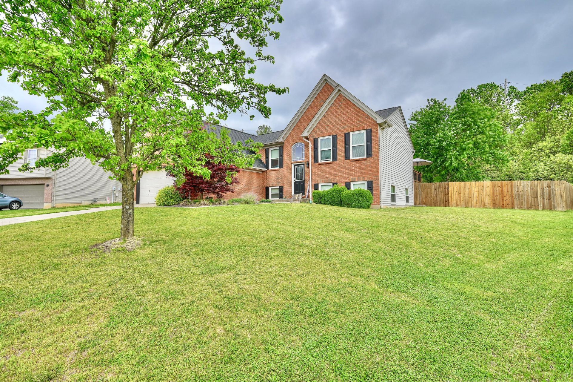 Completely updated with custom brick staggered gables on front for a great curb appeal! 4 bedrooms, 3 full baths, 2 car garage with back stairs for access to backyard & pool. Level fenced yard with deck, privacy fence, and woods in rear. Above ground pool with deck for seating. Hardwood floors on first floor. Open floor plan with large eat-in kitchen with island and dining area open to living area. Walk-out access to large deck with doublewide steps to pool area. Cathedral ceiling with beam. Primary bedroom ensuite with updated bath & double shower and two walk-in closets. Lower level has huge family room, two bedrooms, and full...read more